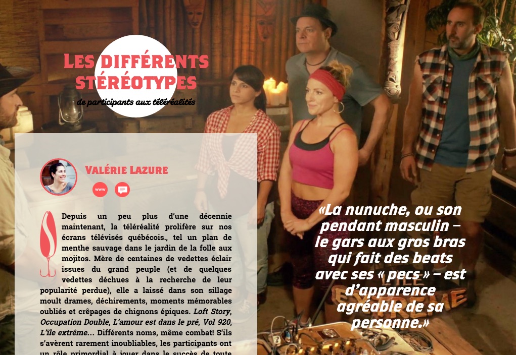 Apprenez-en plus sur les différents [stéréo]types de participant qui font de chaque téléréalité un vif succès en consultant cet article paru dans la 21e édition de La Pêche+, le magazine numérique humoristique de l’émission Les Pêcheurs!
