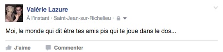 Il a des choses à dire, mais n’aura pas l’information qui veut. Un truc, le mot de passe, c’est « Qu’est-ce qui se passe, mon chou? ». Les plus coriaces d’entre eux te répondront : « Inbox ». Parce que leur vie publique, c’est privé. Ce qui nous amène à cet autre ami…